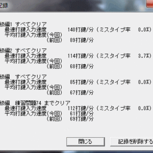 もうPCでは全ての場面で親指シフトで入力できる環境になってますので、今後は実践をメインとし、毎日の反復練習は「ディスプレイを見ないで打つ」「速度を計る」という目的で、NICOLA派宣言のSection9のみにしようかと。