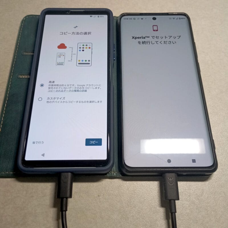 電源投入後の初期設定で、メインスマホのMotorola Edge40から設定を移行してるの図です。