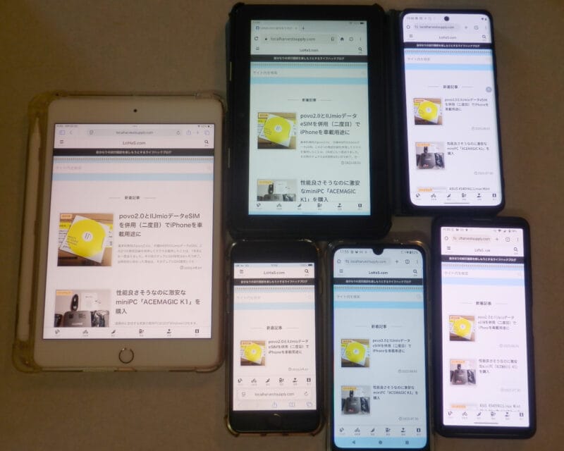 左がiPad mini、中央上がAmazon Fire7、右上がMotorola Edge40、