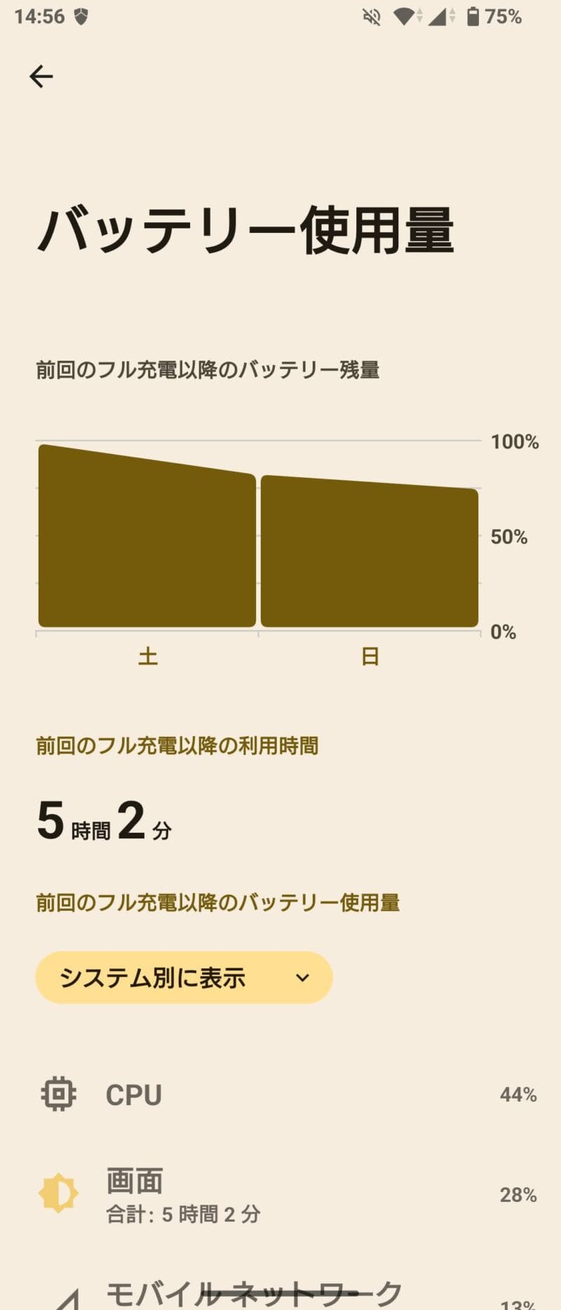 この1週間はいまだ音楽再生やカメラ、移動などをしておらず、バッテリーに負荷がかかる環境ではありません。