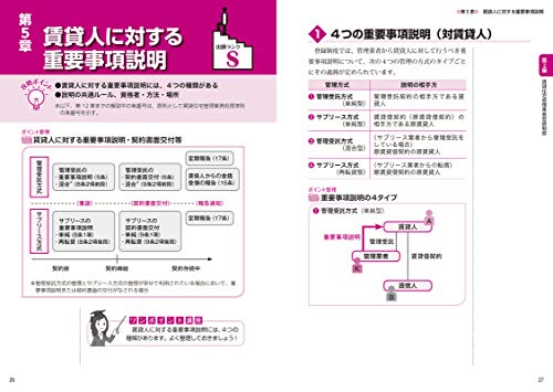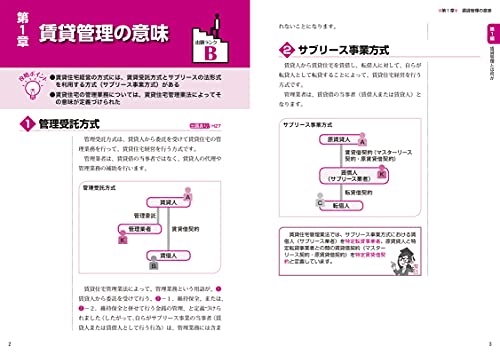 公式テキストの巻頭だった「意義・役割をめぐる社会状況」「倫理憲章」などは日建テキストでは後ろに飛び、その一方日建テキストの巻頭には別途、賃貸管理業務の流れ・管理受託とサブリースの比較の項目が加わっていました。