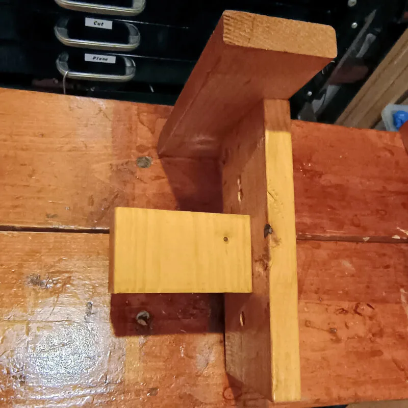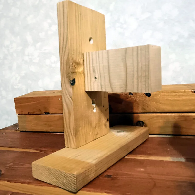 15年ほど前にニトリで買った電気スタンドと、手持ちの木の端材を流用します。