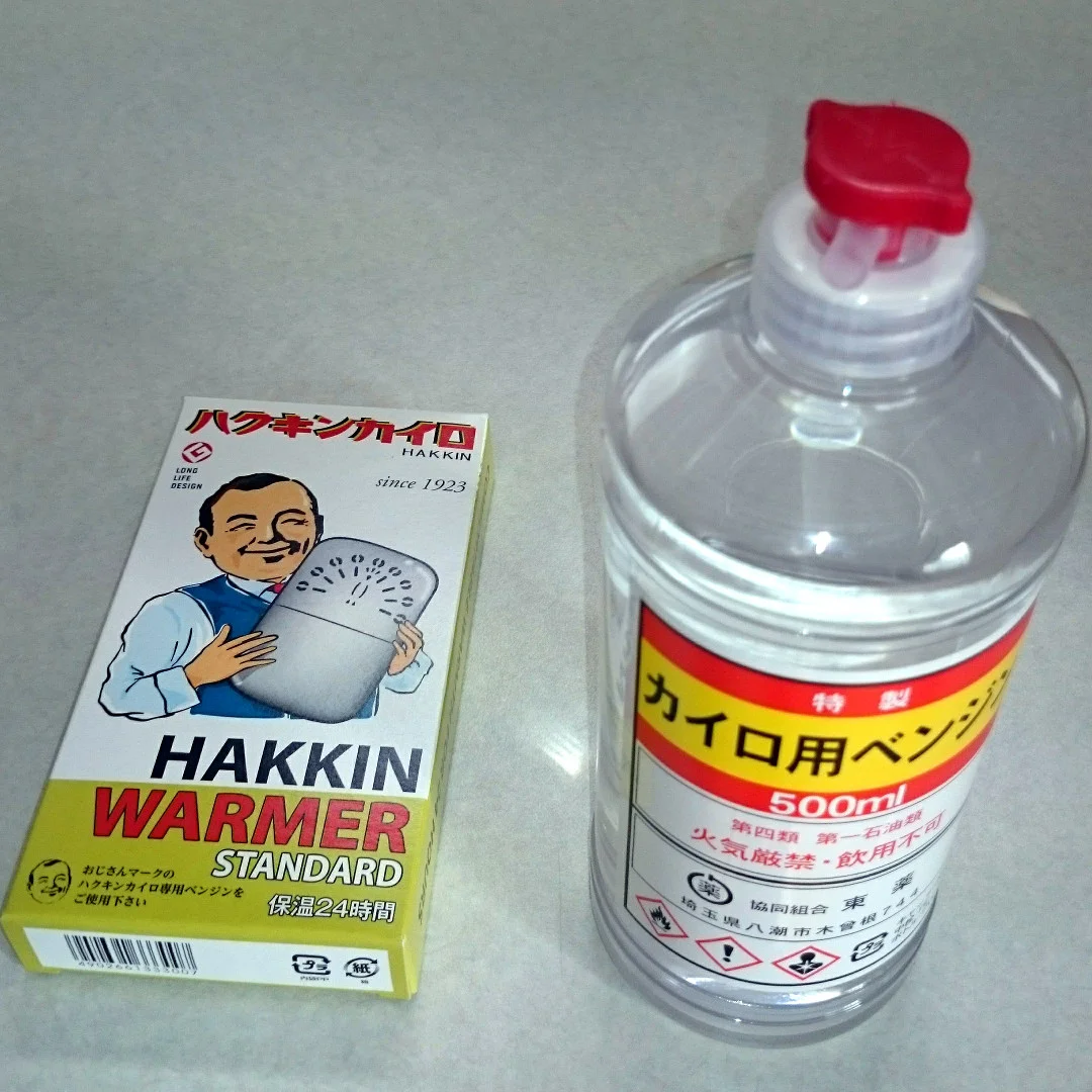 替わりにzippo燃料の代用に使えるベンジンを検索したところ、関連商品としてたくさん表示されていたのがこの「ハクキンカイロ」です。