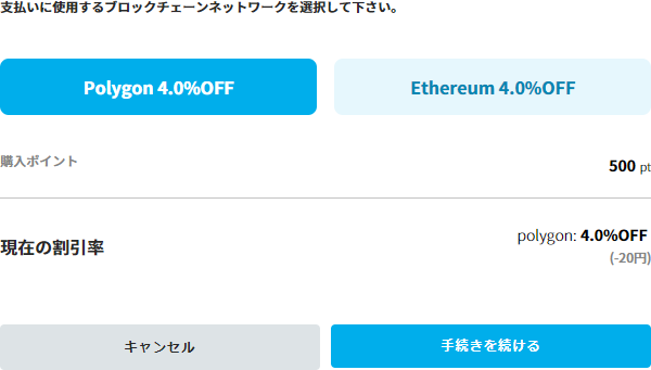 Polygonブロックチェーンを利用しているため、MATICという暗号資産でガス代を支払います。