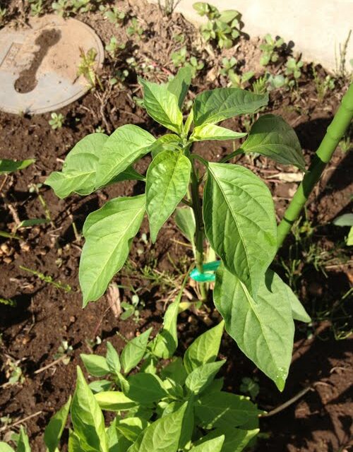 間引き・脇芽取り・支柱立て・施肥一昨日は久しぶりの休みなので一度にやってしまったの図。防虫対策一昨日は防虫対策も。作物が食べ物なんで、当然防虫対策は農薬フリーで、と思ってググったら、ニンニクや唐辛子を利用した例を見つけました。そこで、古くなったチリソースをジョウロに入れ、水で薄め、かけてみました。効果はしばらく様子見です。一番育ってる株開花はまだまだの様子。この唐辛子の種をくれた人のところでは、何と先日花が咲いたそうです。