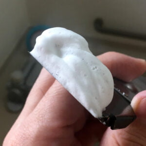 チューブ式クリームでのフェイスラザリングは、まるで歯ブラシに歯磨き粉を乗せて歯を磨くかのように、シェービングブラシにクリームを乗せて顔面で泡立てる、という手順です。