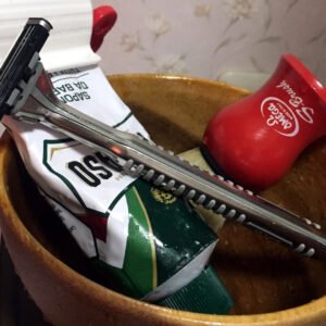 - 両刃カミソリでも、両側の刃の減りを均等にしようと、持ち替えるときに使うエッジを切り替える癖をつけとく(これもマイルール)