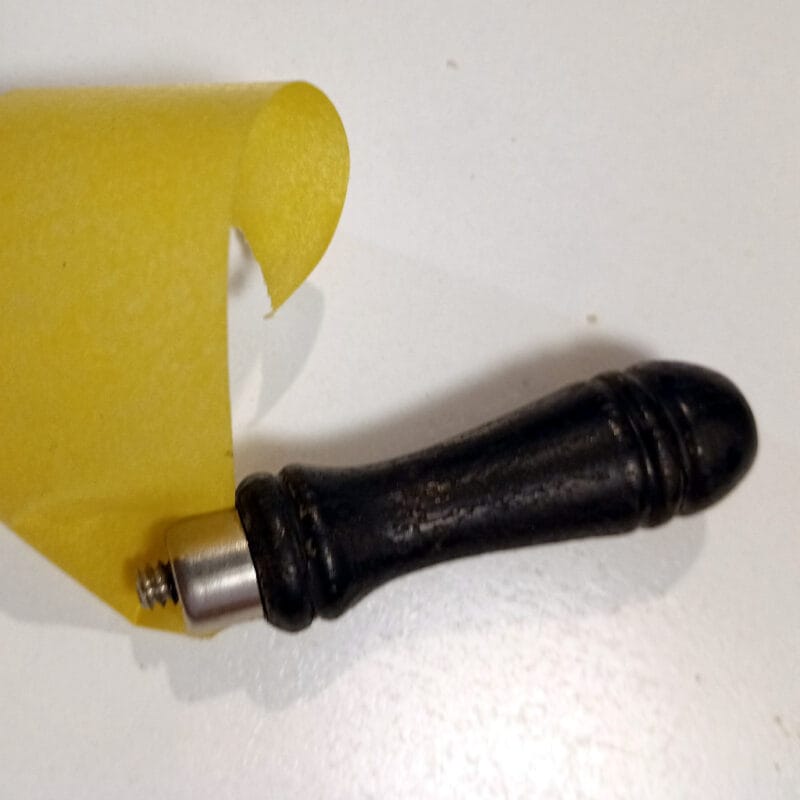 ネジ部分がちょうど刺さるよう、木材に3mmのドリル穴をあけ、ハンドルを固定。