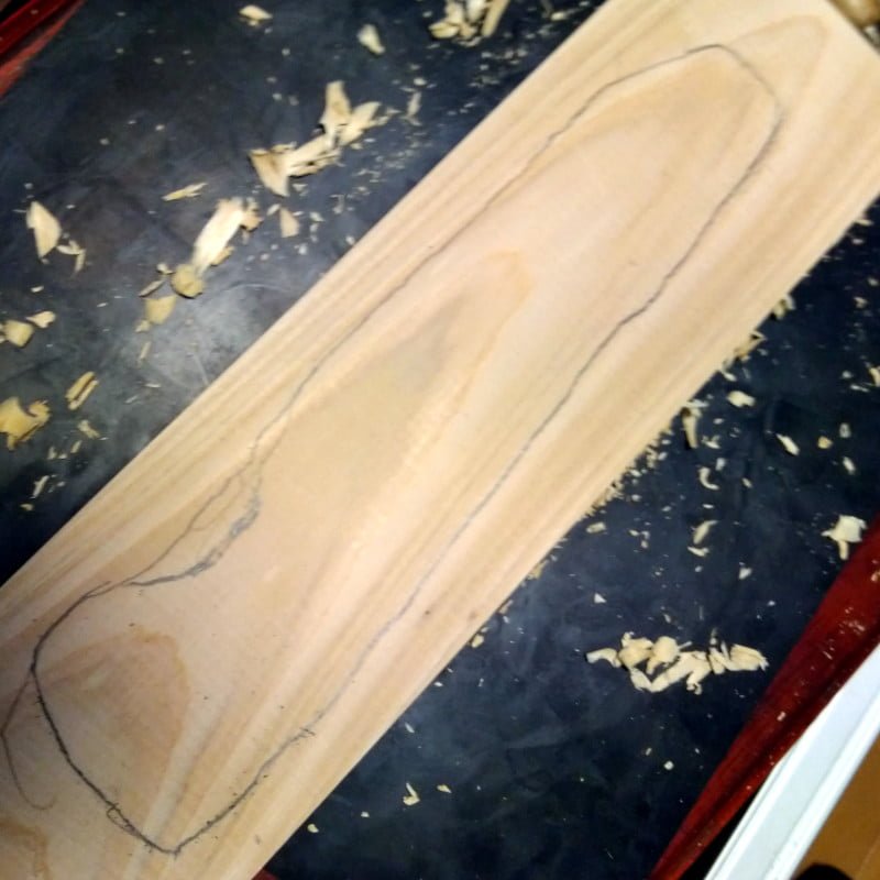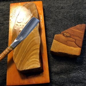 台となる木を、砥石底面の凹凸にあわせて彫ってみました。
