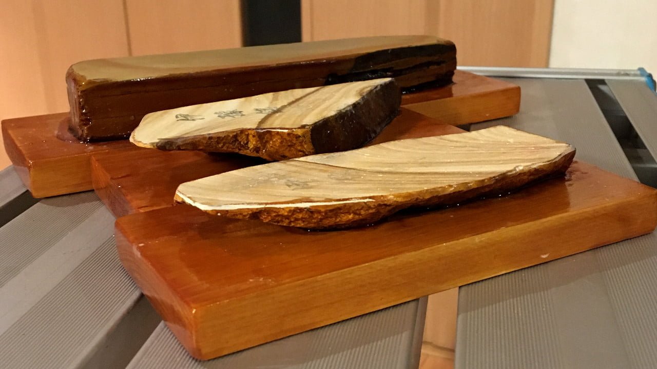 そう考えた矢先、以前伊予砥石のクラウドファンディングに参加した際、セットでついてきた天然伊予砥のコッパの存在を思い出しました。