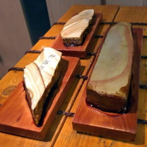 このように一列に穴あけした木を列に沿って真っ二つにしたら穴が溝として並び、