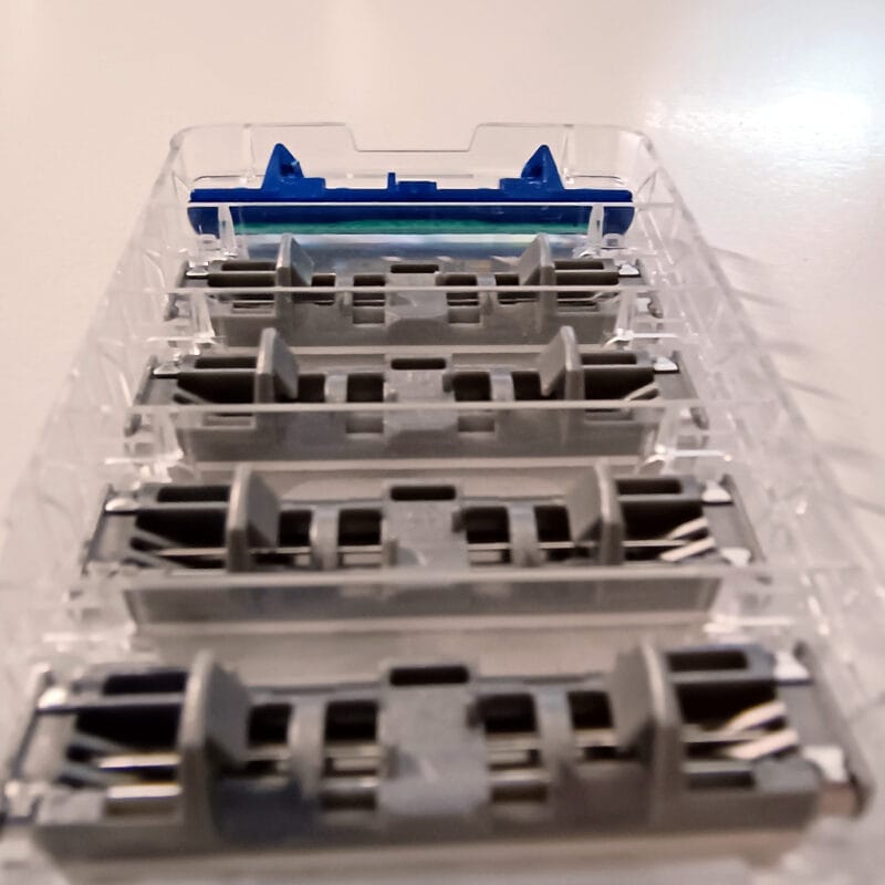 写真上の青カートリッジがカスタムプラスEXで、それ以外のグレーカートリッジはセンサーExcel。