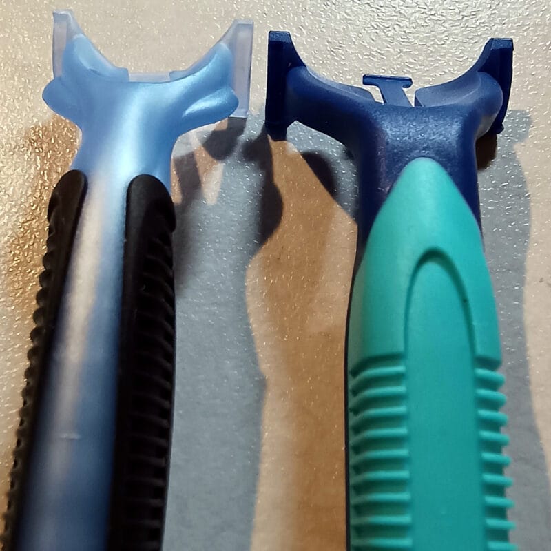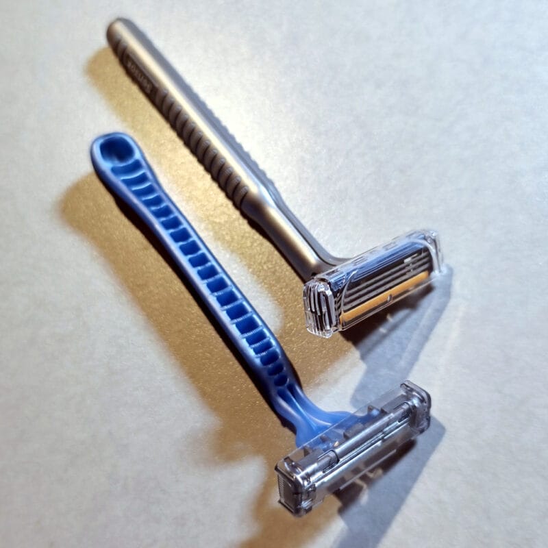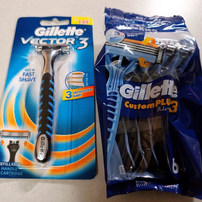 左がカードリッジ剃刀のVector3、右がディスポのカスタムPlus3です。