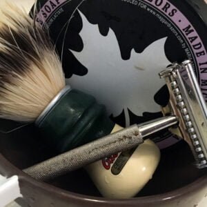 刃先も尖ってるし、一見いかつくて扱いづらそうな恰好ですが、実は刃背の波状突起は指にピッタリ、また刃線も短く実に扱いやすいカミソリです。