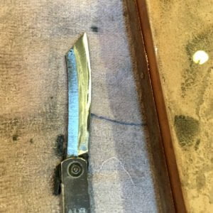 まず両側面に平面を作るため、突起部分を肥後守でカット。
