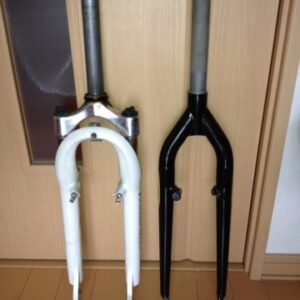 新たにつけた黒いプラスチックペダルは、10年近く前に子供用に買った「しまじろう自転車」についていた折り畳みペダルです。
