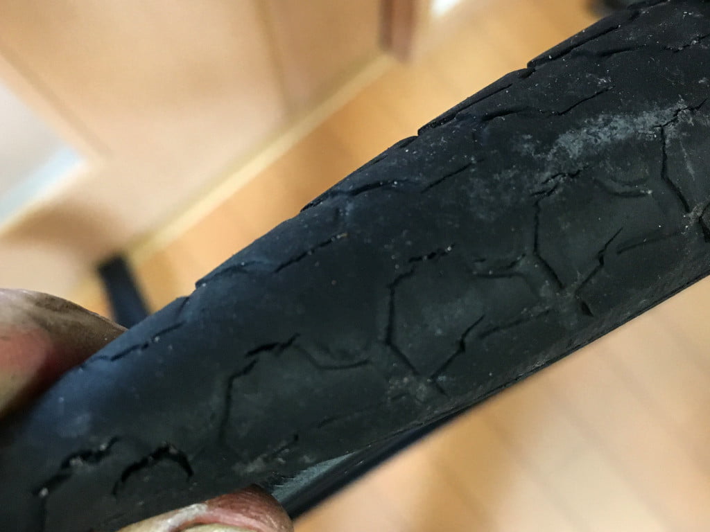 ひび割れタイヤ、2年前に新品に交換したものなんですけどね…
